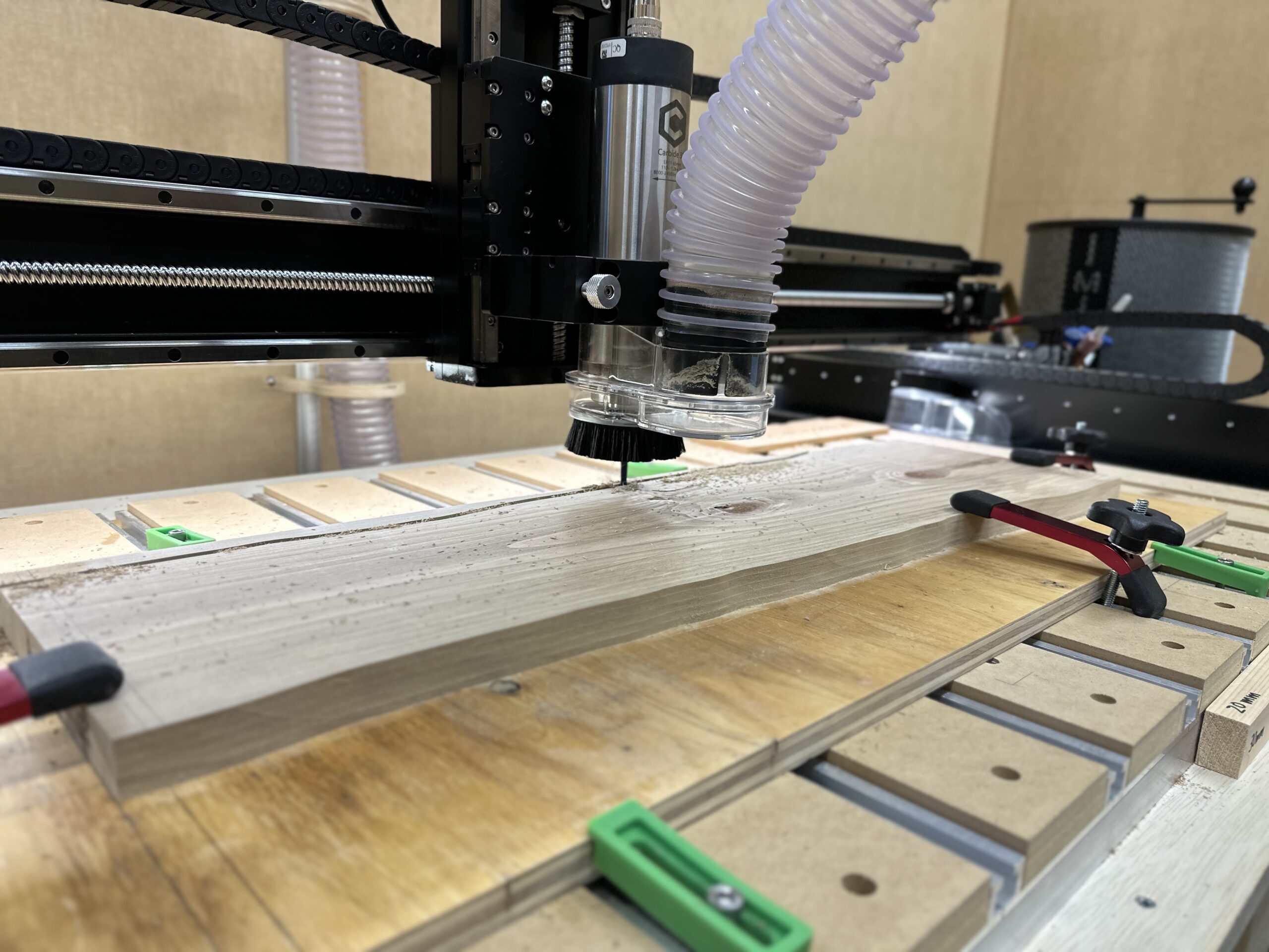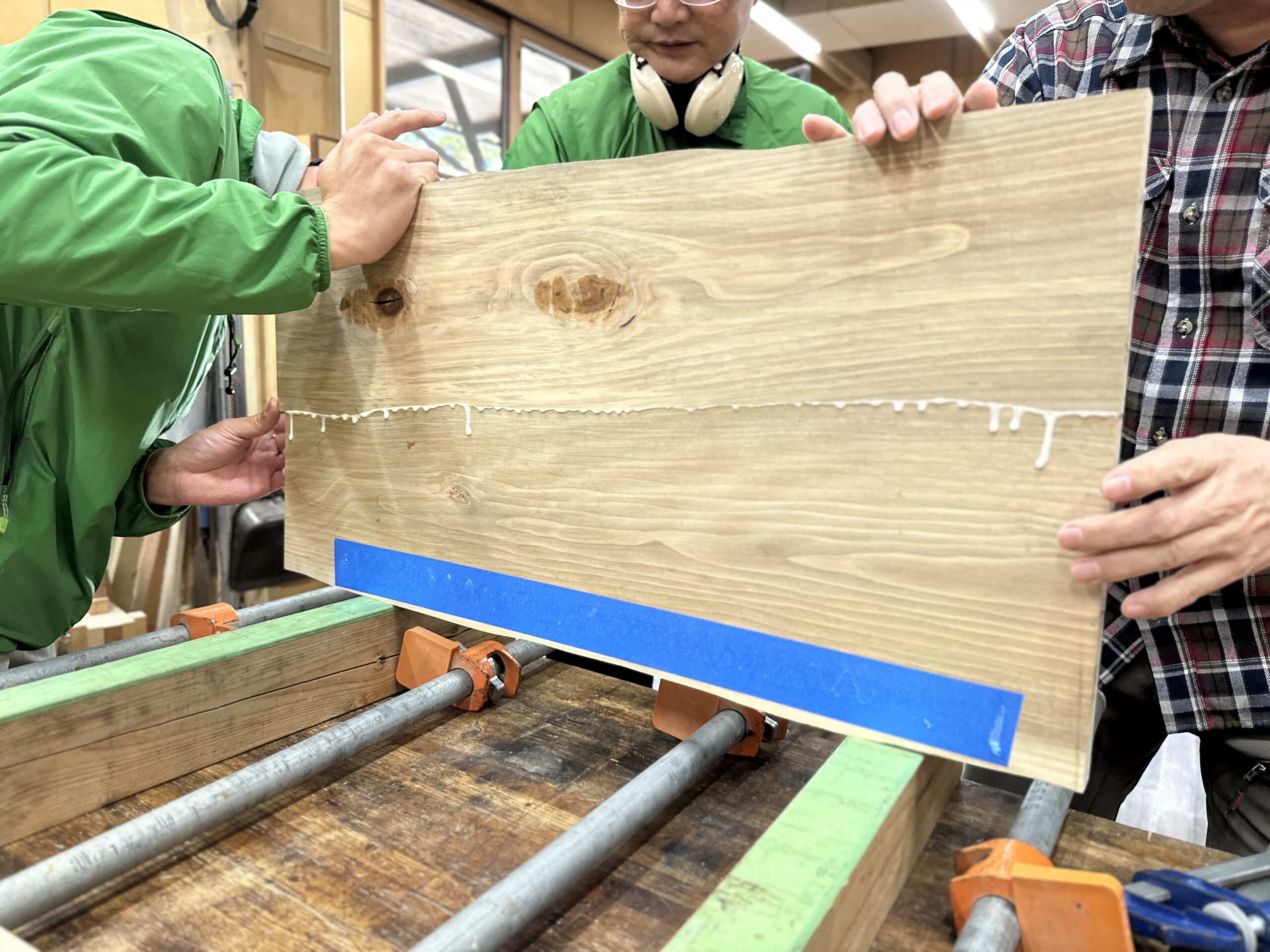 CNCルータを使うことでより細かく板の形状に沿った加工ができるため、板幅を有効に使えます。精度も思った以上で隙間なく接着ができました。