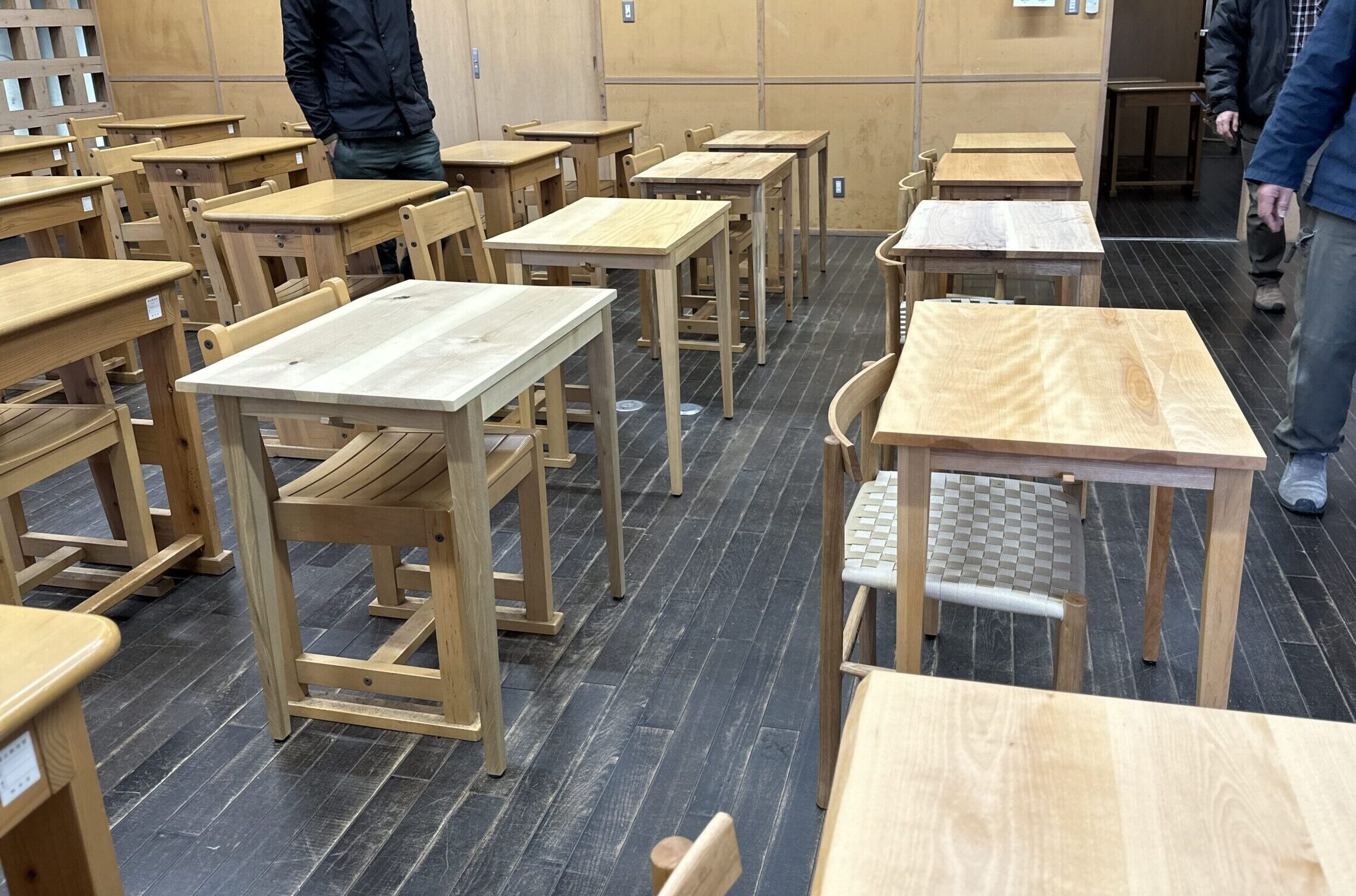 昨年は4樹種5台の机を製作しており、今年のものを合わせて9台となりました。数年かけて講義室の机を学生の皆さんの製作したものに置き換えていく予定です。