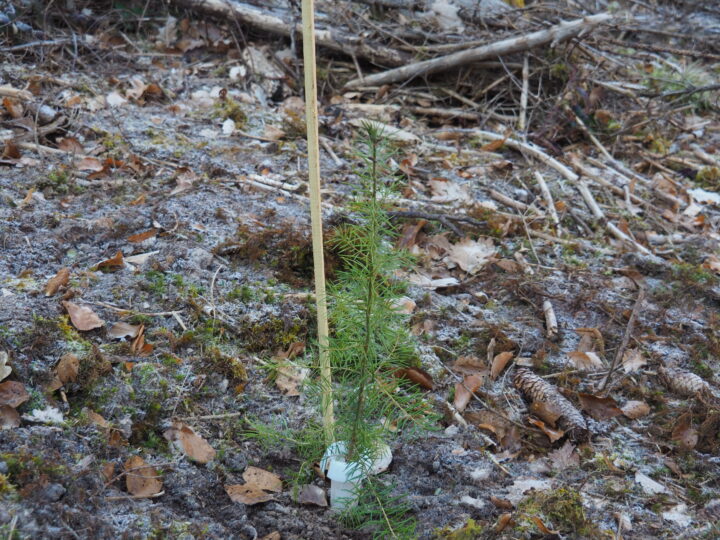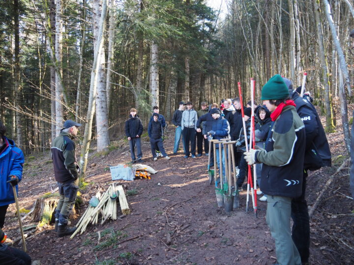 私が見学した日は、林業のハイン教授の担当でした。1時間目は14歳の生徒たち1クラス20人ほどが森に集まり、針葉樹の苗を植えます。