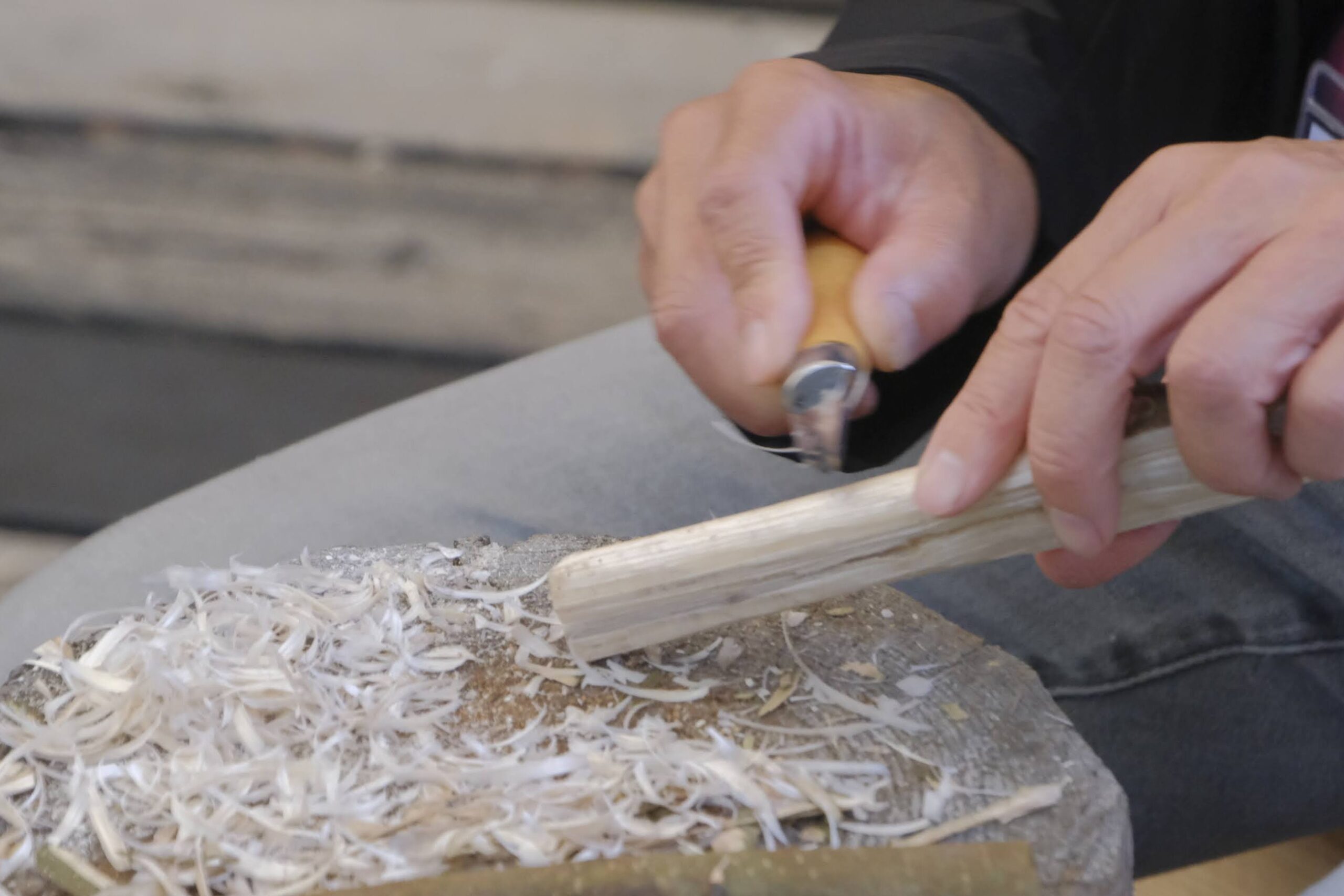 本番のプログラムでは、ネイチャージャーナリングの体験を午前中に森で行い、それを受けて、自分は午後に「彫刻(ナイフワーク)」のパートをどのように展開しようかと考えました。