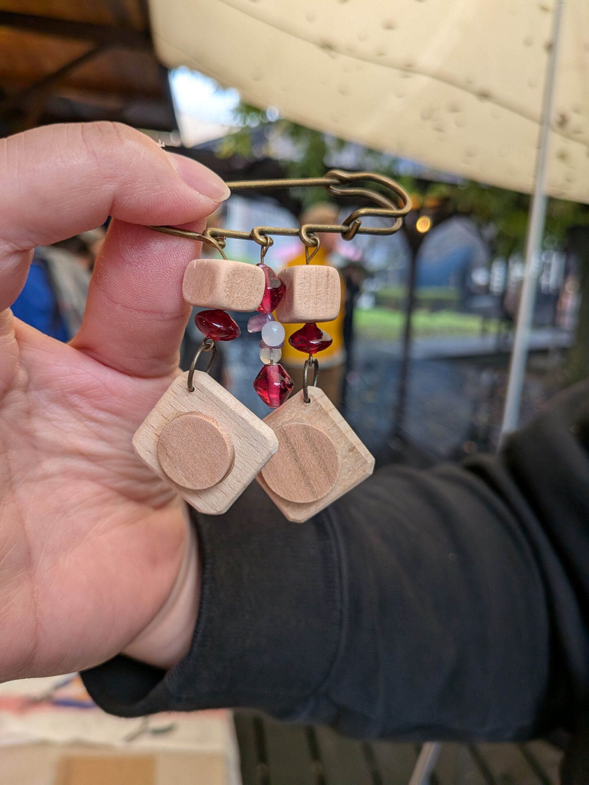 そして今回はストーリーのある木を中心にビーズを作って、それをアクセサリーとしてもらうという内容としました。ストーリーとは例えば、近所の保育園でやむをえず切ることになった木、アカデミーの工房から出たまだまだ使える端材、或いはロクショウグサレキンで青みがかった材、一般的にはまだ馴染みのないであろうスポルテッド材などを使用するといった事です。そういった具体的なストーリー性や来歴のわかる材料を用いることで、より親しみを持ってもらえるのではないかと考えました。