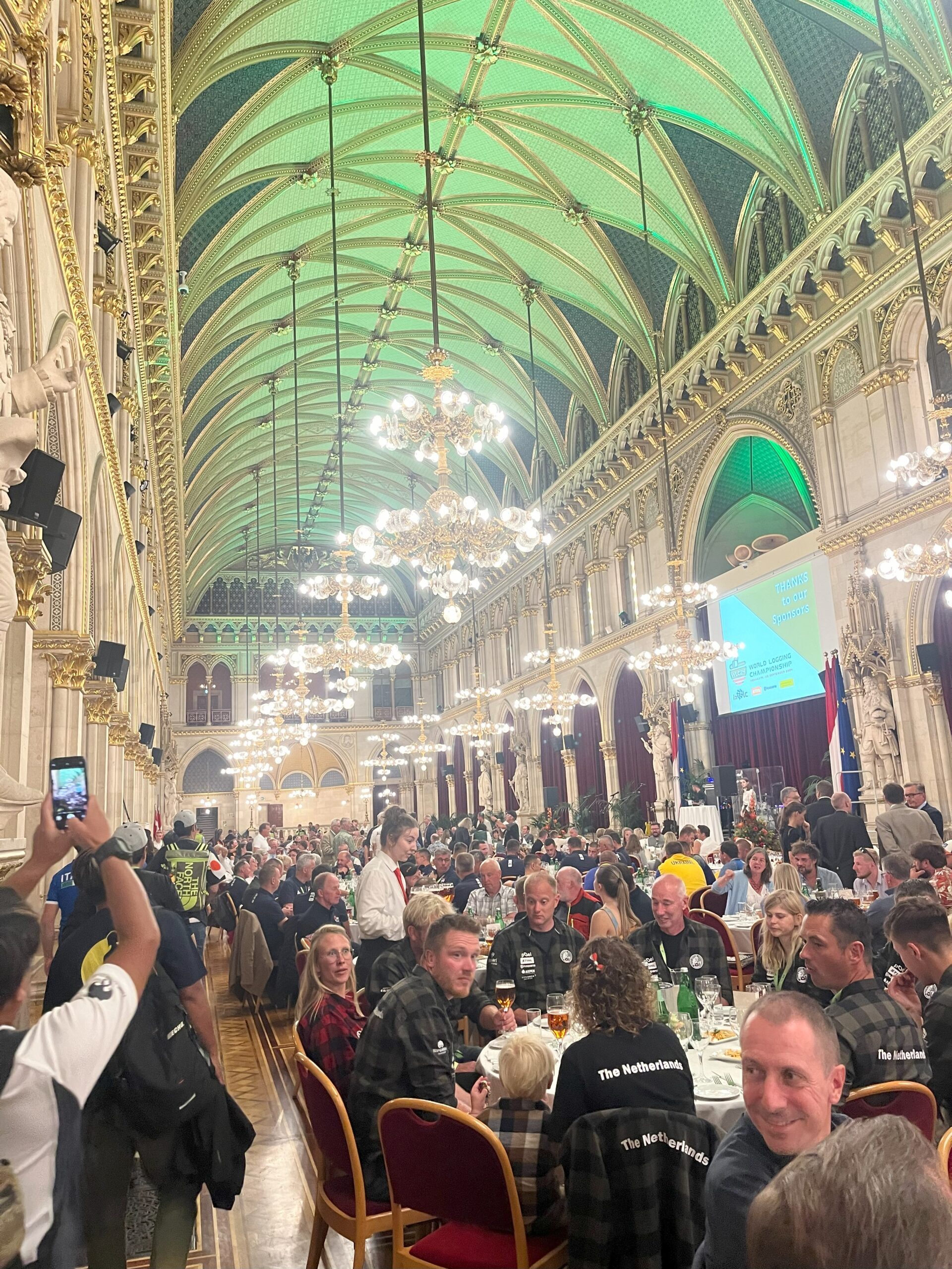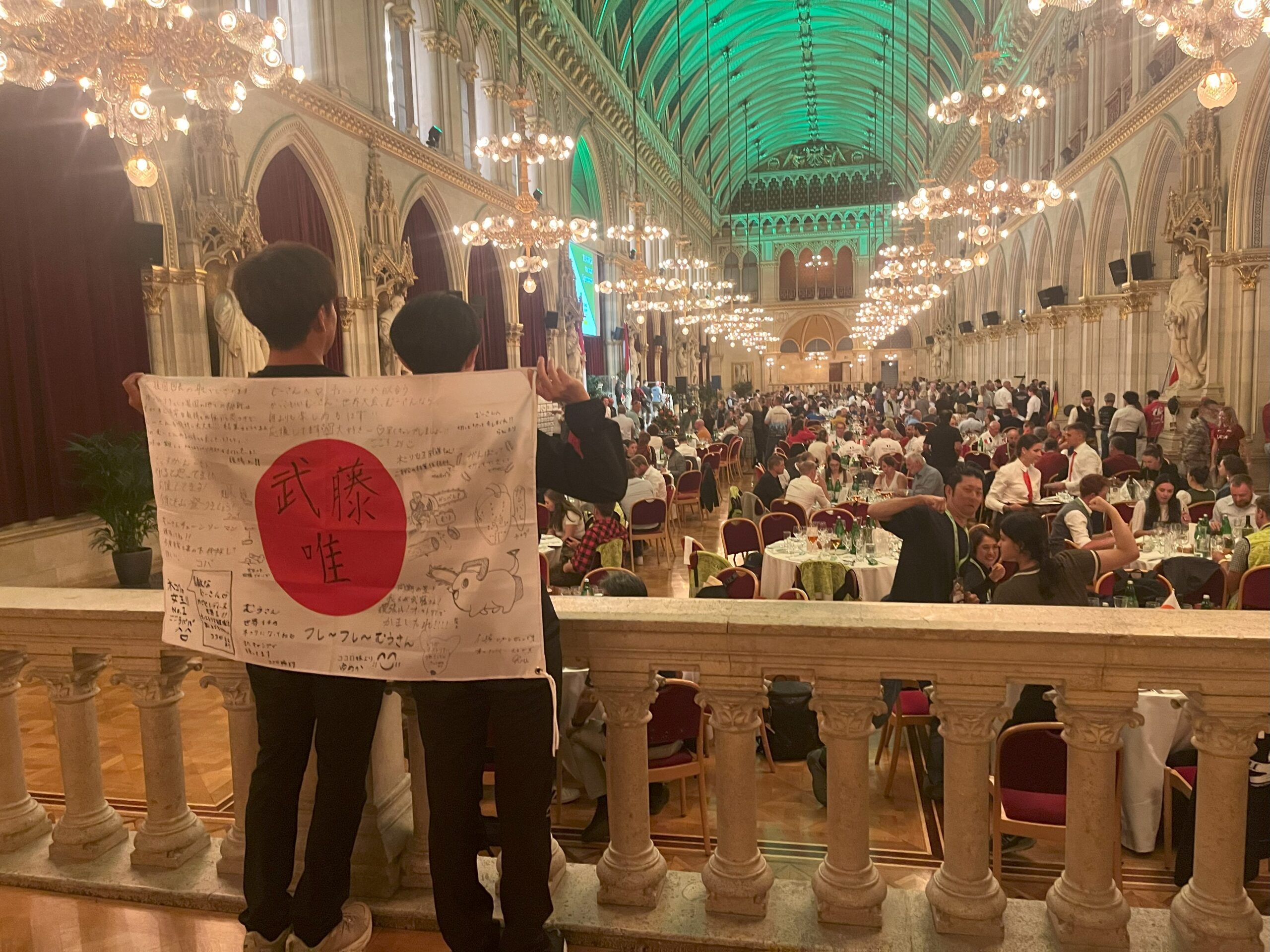 そして最終日の閉会式、会場はウィーン市庁舎です。およそ140年前に建築された歴史的な建物です。大ホールへ上がる階段にはレッドカーペットが敷き詰められており、荘厳さを感じます。