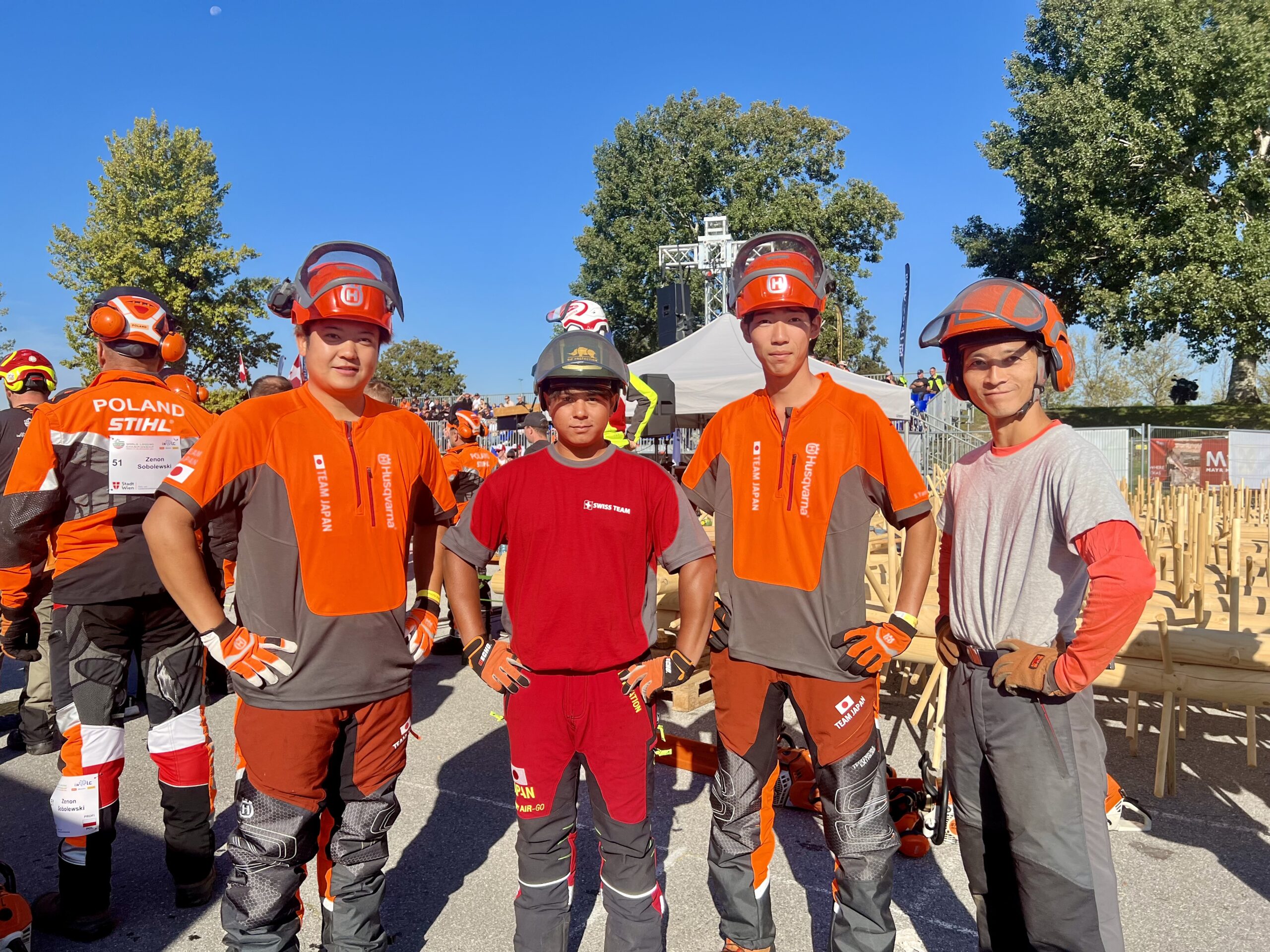 day3のyoutube動画でリレーの様子を見ることが出来ます。1:04:30頃です。終わった瞬間、まあまあいい結果が出せたかなと思いましたが、終わってみれば日本チーム最下位でした泣。私も1本目の丸太が切り落とされていないという痛恨のミス!やはり全体で集まって練習しないとだめですね。優勝はスイスチームでした。