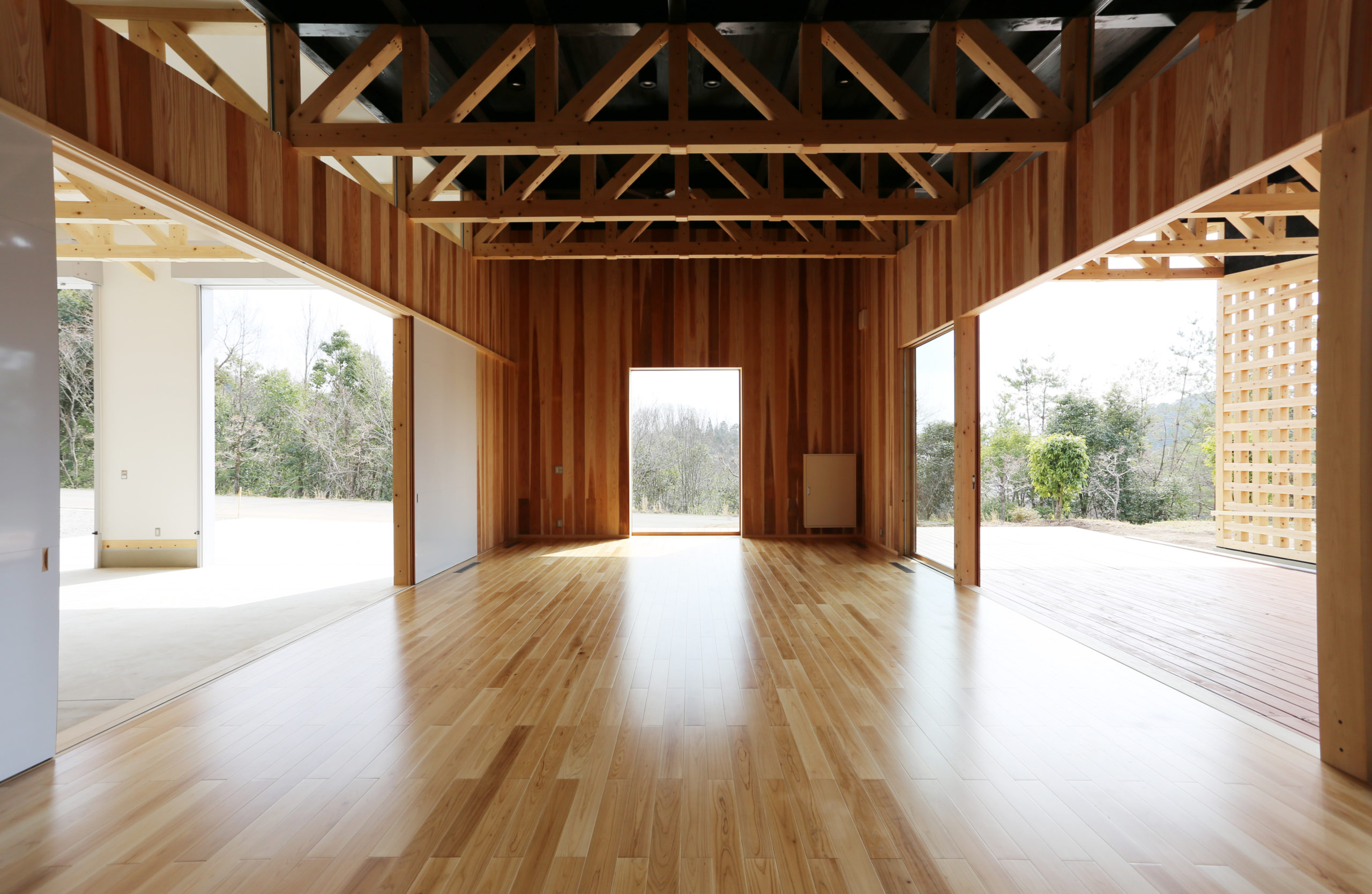 従来集成材でつくっていたトラスを、一般製材品で実現。最大12mまで飛ばすことができます。