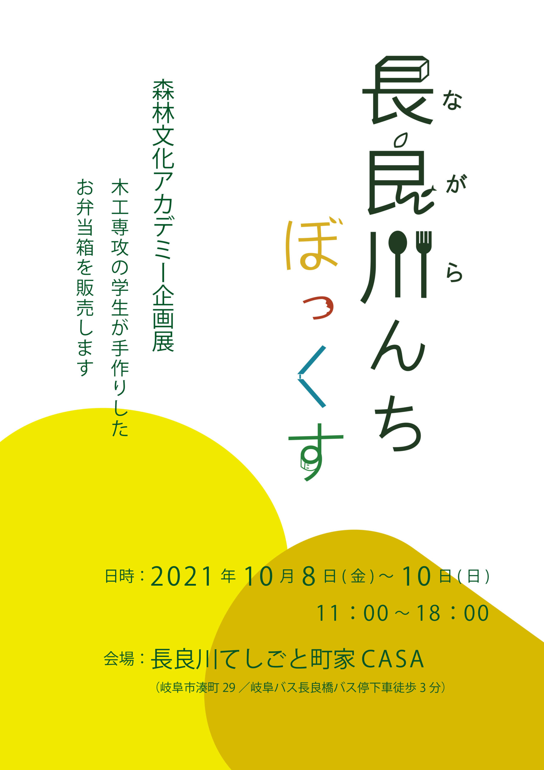 10月8(金)9(土)10(日)の3日間、岐阜市にある長良川てしごと町家CASA(〒500-8009 岐阜市湊町29)で、木工専攻の学生4人が制作した木製のお弁当箱の販売を致します。